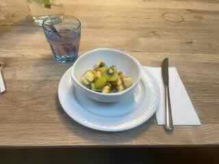 Am Morgen frühstückte ich im Riva ein Fruchtsalat.