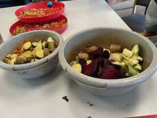 Wo ich zuerst einen orientalischen Tee trank und danach Gemüse für die kunekune-Schweine schnetzelte.