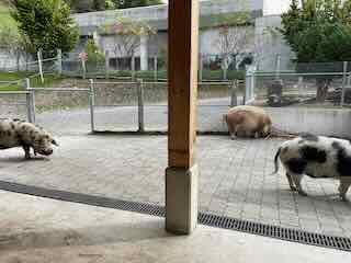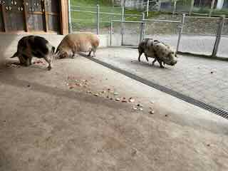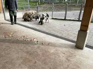 Anschliessend war vor dem Mittagessen noch genug Zeit um die kunekune-Schweine zu füttern.