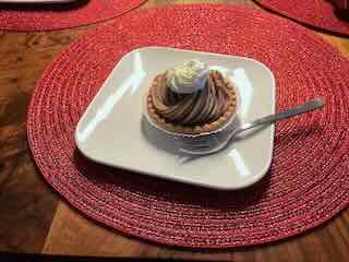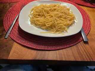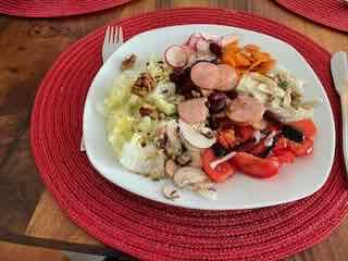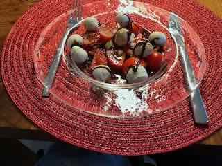 Es gab Spaghetti zur Vorspeise einen Capresé-Salat zur Vorspeise, danach Spaghetti und zum Dessert ein Vermicelles.