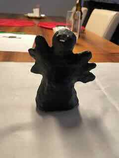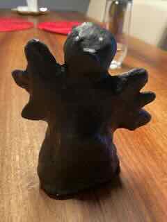 Danach machte ich noch auf den keinen schwarzen Pappmaché-Engel ein Gesicht, es war fraglich ob das gut wird?