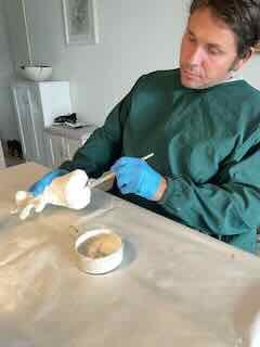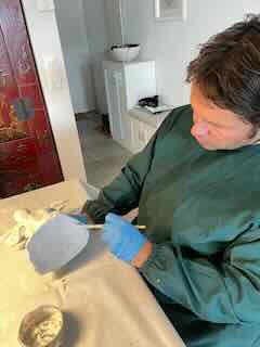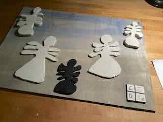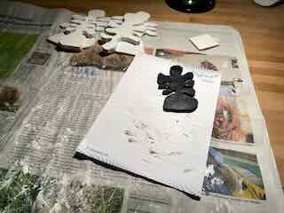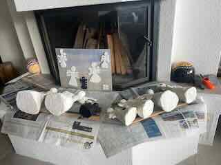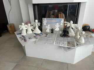 Wo ich die Böden der Gips-Engel erneute bemalte.