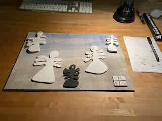 Wirklich die Engel eingezeichnet und mit der Decoupier-Säge die Engel ausgesägt.
