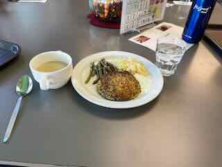 Von der Hauptspeise ass ich die Bohnen und das Vegieschnitzel.