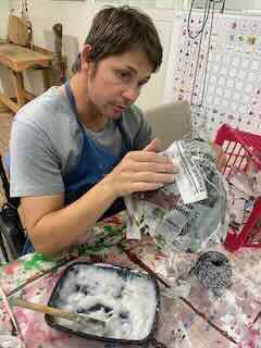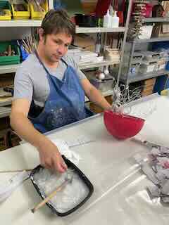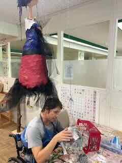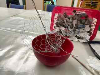 Die kleine Tänzerin aus Draht und die Papierstreifen um mit Fischkleister einzukleistern.