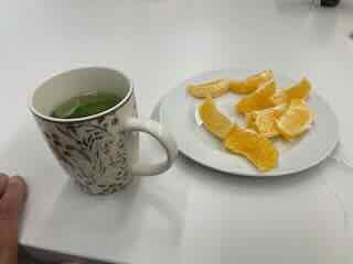 Zum z’Vieri hatte ich eine Orange und einen frischen Kräuter-Tee.