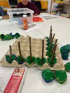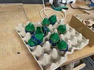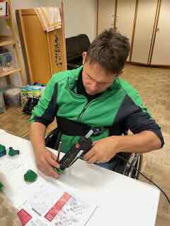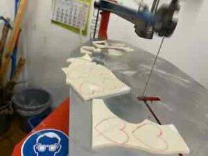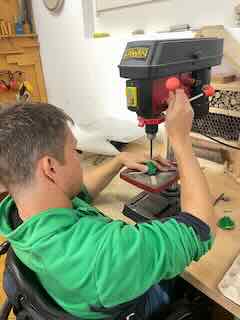 Mit der Decoupiersäge und der Standbohrmaschiene.