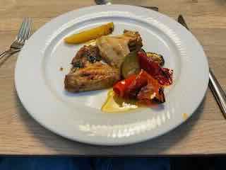 Im Viv. Riva gab es Pouletschenkel mit Gemüse zu Abend.