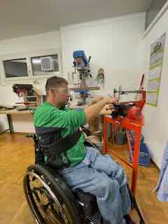 Mit der Decoupiersäge und der Standbohrmaschiene.