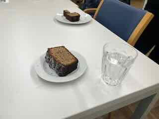 In der Pause ass ich den Dessert vom Mittag.