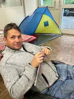 Im Atelier strickte ich am Vormittag.