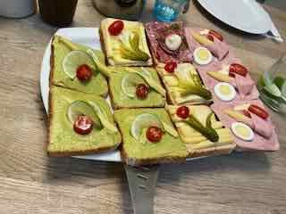 Zu Abend hatte ich belegte-Brote mit Randensalat.