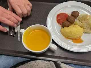 - Eine halbe Kürbiscreme-Suppe