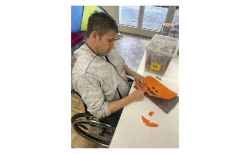 Auf dem Beitragsbild sieht man mich Halloween-Fensterdekoration fürs Atelier im Wohnheim Balm stüpferlen.
