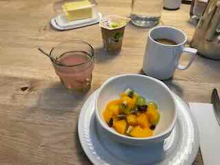 Am Morgen frühstückte ich ein Früchtsalat und ein wenig Käse und Aufschnitt.