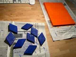 Vor dem Aufleimen bemalte ich die Hintergrundplatte mit oranger Acryl-Farbe.