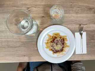 Wo ich Penne à la rabiata und grüner Salat zu Mittag ass.