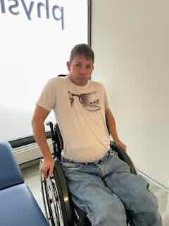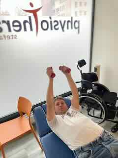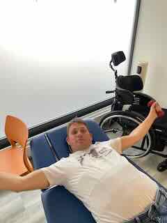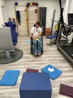 Gefolgt von Stütztraining im Rollstuhl.