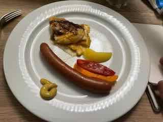 Zum Frühstück hatte ich wie immer ein Fruchtsalat mit Stracciatella-Joghurt und die üblichen Getränke.