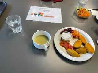 Im Café Balm ass ich zur Vorspeise eine halbe Grünerbsensuppe und danach den Wochenhit.