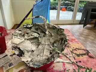 Am Nachmittag machte ich einen Mund aus Papier und die Augen male ich.
