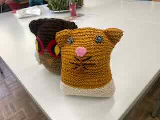 Dies sind zwei Babyspielzeuge vom Foto unten, strickte ich und die werden am nächsten Balmfest verkauf.