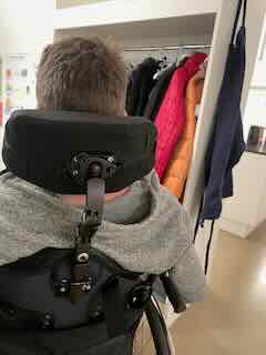 Sofort merkte dass es mir sehr gut tut, weil dank der Kopfstütze gerader als jemals zu vor im Rollstuhl sitze und kein bisschen Schmerzen mehr habe.