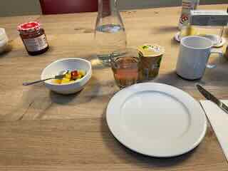 Zum Frühstück hatte ich wie immer ein Fruchtsalat mit Stracciattella-Joghurt.