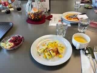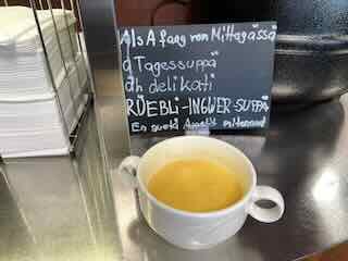 In der Mittagspause hatte ich im Café Balm eine halbe Karotten-Ingwer-Suppe, ein gemischter Menüsalat und zur Hauptspeise drei Spinat Cannelloni.