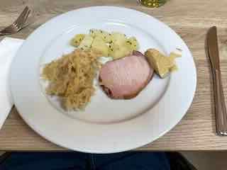 Zurück im Viv. Riva hatte ich Schweinsschinken mit Sauerkraut und Kartoffeln zu Mittag.