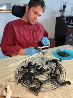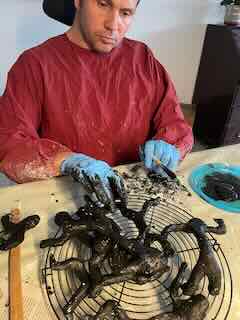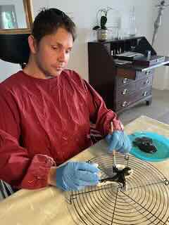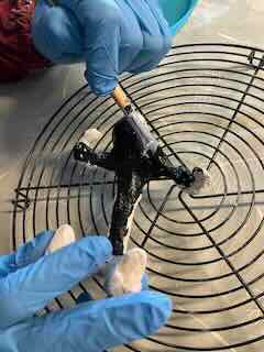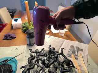 Um das Trocknen zu beschleunigen, half Joe mit einem Föhn nach.