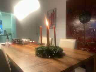 Als wir die Kletterer und Wanderer schwarz bemalt haben, zündeten wir bereits die erste Kerze am Adventskranz.
