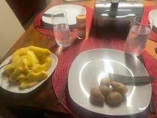 Zu Abend assen ich Raclette mit Ananas und Kartoffeln.