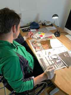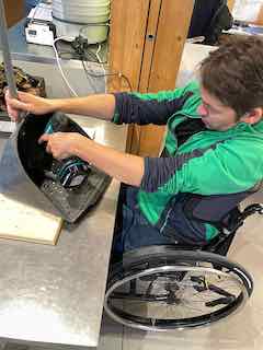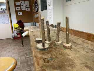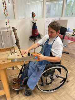 Auf diesem Beitragsbild bin ich im Werkatelier vom Wohnheim Balm ein Holzständer am kürzen.