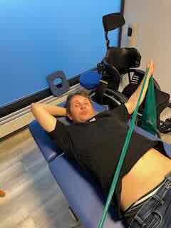 Danach machte ich noch diagonales Krafttraining auf der Liege.