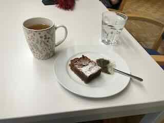 In der Pause ass ich den Brownie vom Dessert am Mittag.