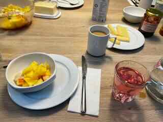 Am Morgen ass ich ein Fruchtsalat mit nichts, trank eine Tasse Kaffe und ein femannose.