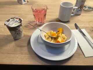 Im Viv. Riva hatte ich zum Frühstück eine Schale Fruchttsalat und ein Stracciallea-Joghurt.