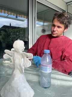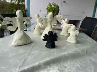 Wo ich die Böden der Gips-Engel erneute bemalte.