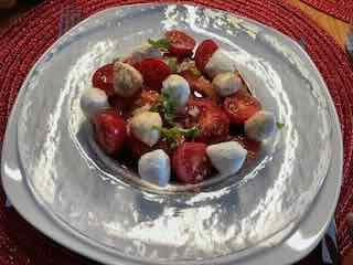 Es gab Spaghetti zur Vorspeise einen Capresé-Salat zur Vorspeise, danach Spaghetti und zum Dessert ein Vermicelles.