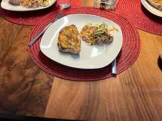 Einem gemischten Salat zur Vorspeise und zur Hauptspeise Saltimbocca mit Pilzrisotto und Tomaten und Zucchetti aus dem Backofen. 😋