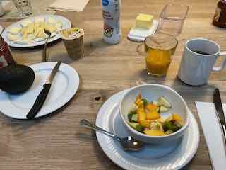 Gefrühstückt habe ich wie immer ein Fruchtsalat mit Joghurt, aber das aussergewöhnliche war die Avocado