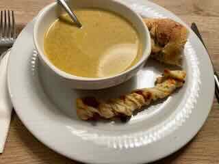 Zu Mittag ass ich im Café Balm eine halbe Marronicreme-Suppe.