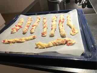 Zur Hauptspeise Chilli-Cheese Nuggets mit Salat.