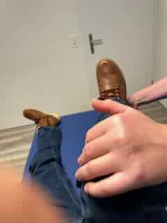 Nach der Nachmittagspause schraubte ich wie schon mal vier Parkett-Gleiter mit der Akkubohrmaschiene an die Stuhlbeine eines Stuhles vom Balmhof.