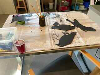 Wo ich die Böden der Gips-Engel erneute bemalte.