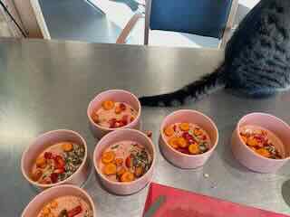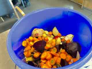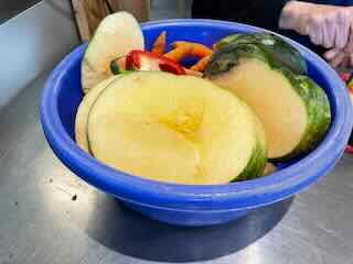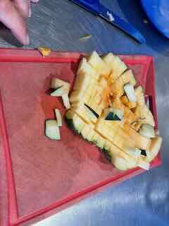 Wo ich zuerst einen orientalischen Tee trank und danach Gemüse für die kunekune-Schweine schnetzelte.