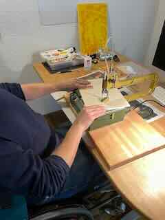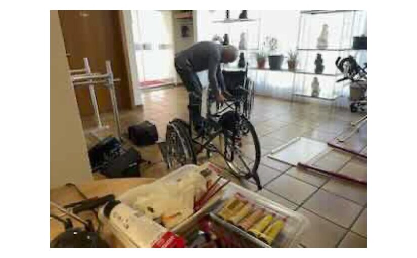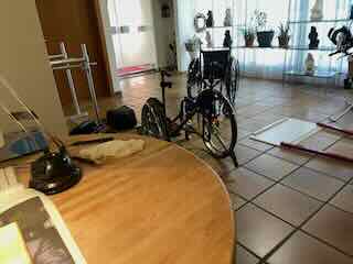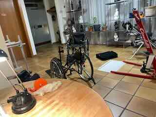 Ivo ersetzte die Halterung des Sitzkissen, von einem Stofftuch durch ein Holzbrett vom älteren Rollstuhl.