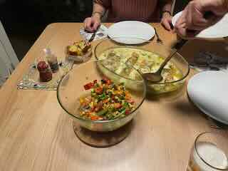 Zu Abend hatte ich Lachsfillet mit Gemüse.