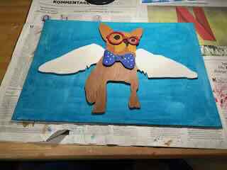 Die Flügel überlegte ich mir ob ich eine Federstruktur aufmalen soll aber Schlussendlich entschloss ich mich, dass es besser ausschaut mit weisser Farbe und einer groben Pinsselspuren.